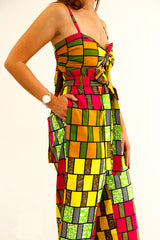 Trousers and top set. Trousers with pockets and fastening strap. Top with adjustable straps and fastening at the back.